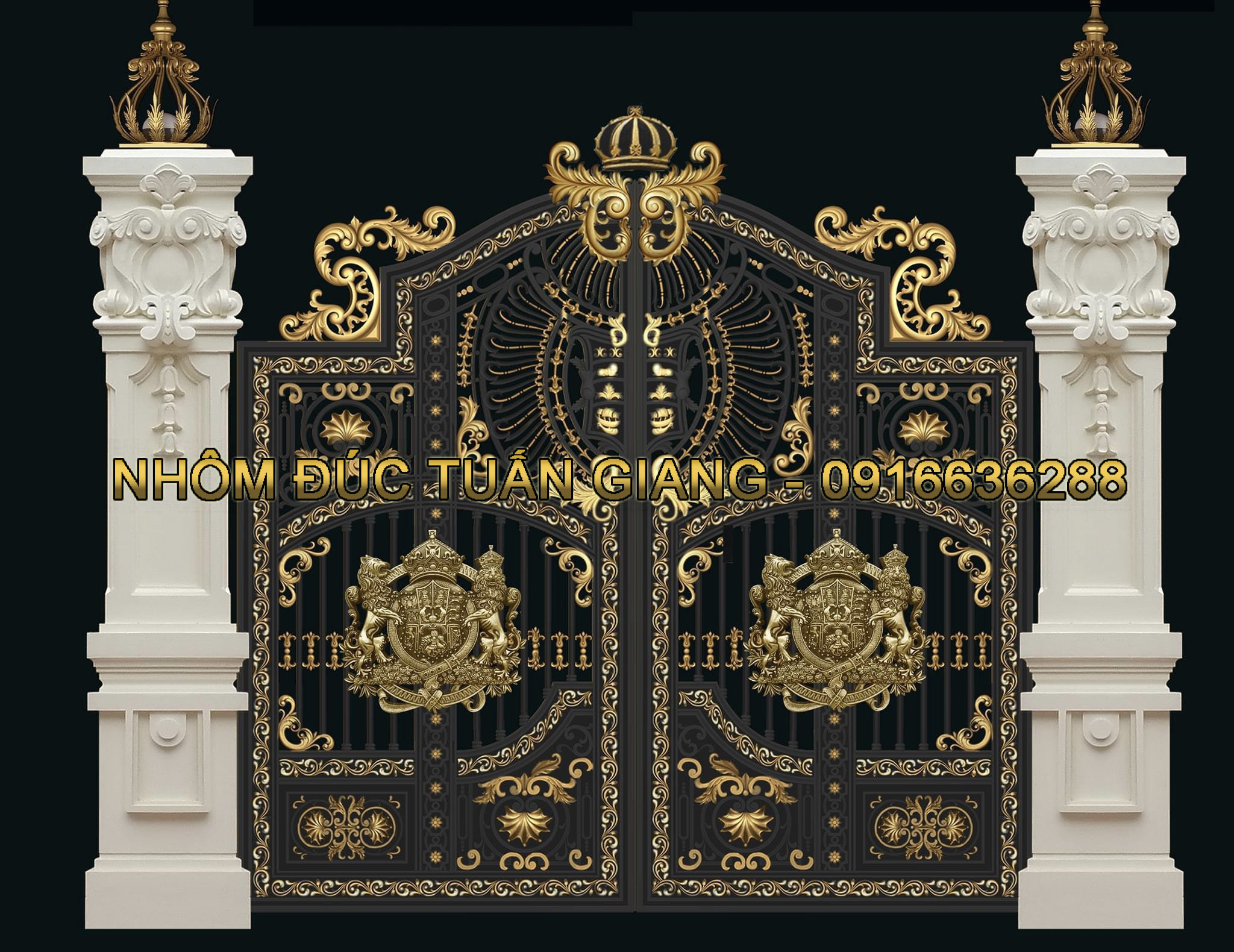 * Quý khách có thể chọn hoa văn có sẵn hoặc yêu cầu Tuấn Giang tư vấn và thiết kế mẫu cổng nhôm đúc theo ý tưởng của Quý khách. Hoặc Quý khách cũng có thể gửi mẫu để Tuấn Giang sản xuất theo mẫu.