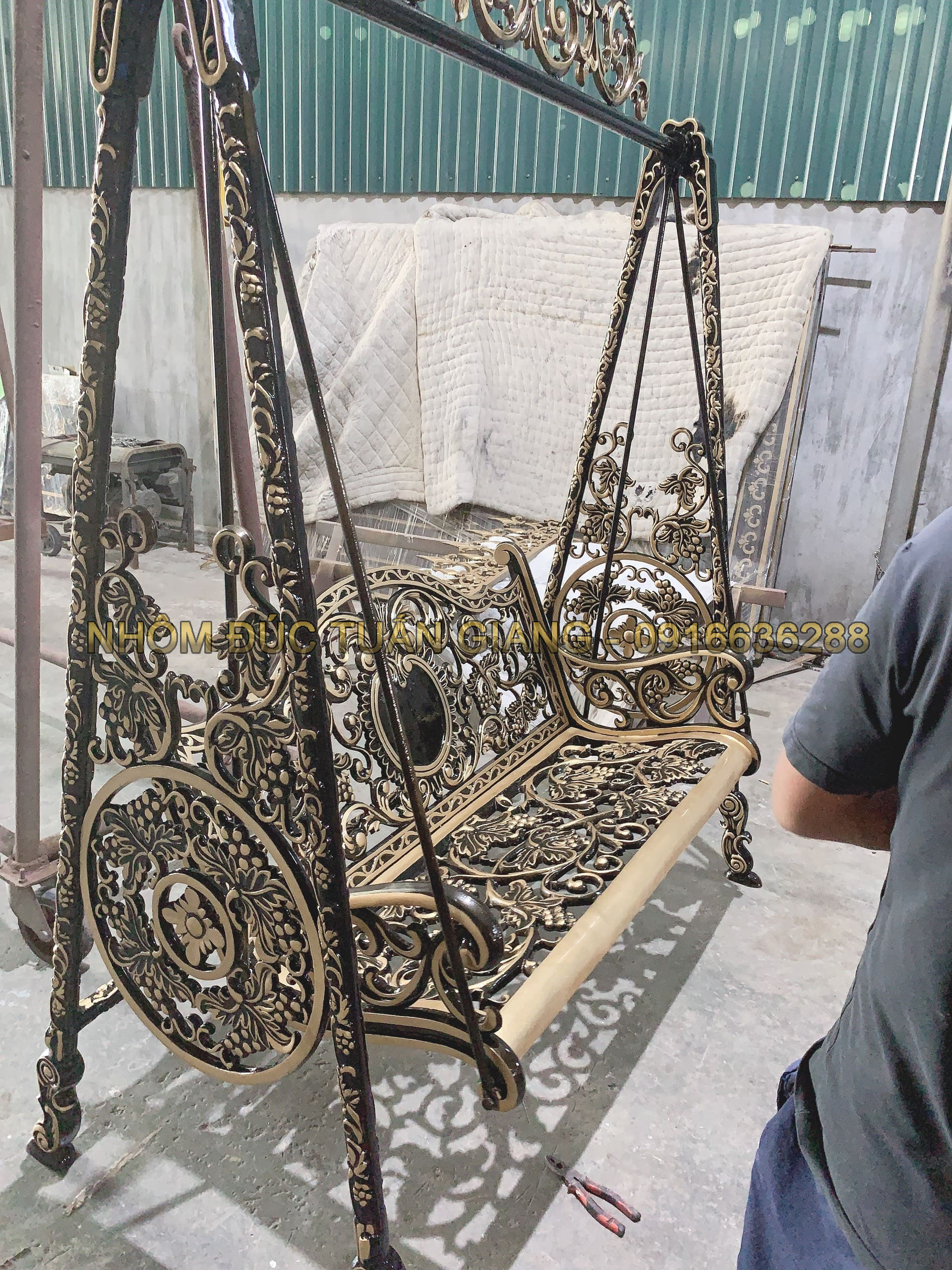 * Quý khách có thể chọn hoa văn có sẵn hoặc yêu cầu Tuấn Giang tư vấn và thiết kế mẫu xích đu nhôm đúc theo ý tưởng của Quý khách. Hoặc Quý khách cũng có thể gửi mẫu để Tuấn Giang sản xuất theo mẫu.