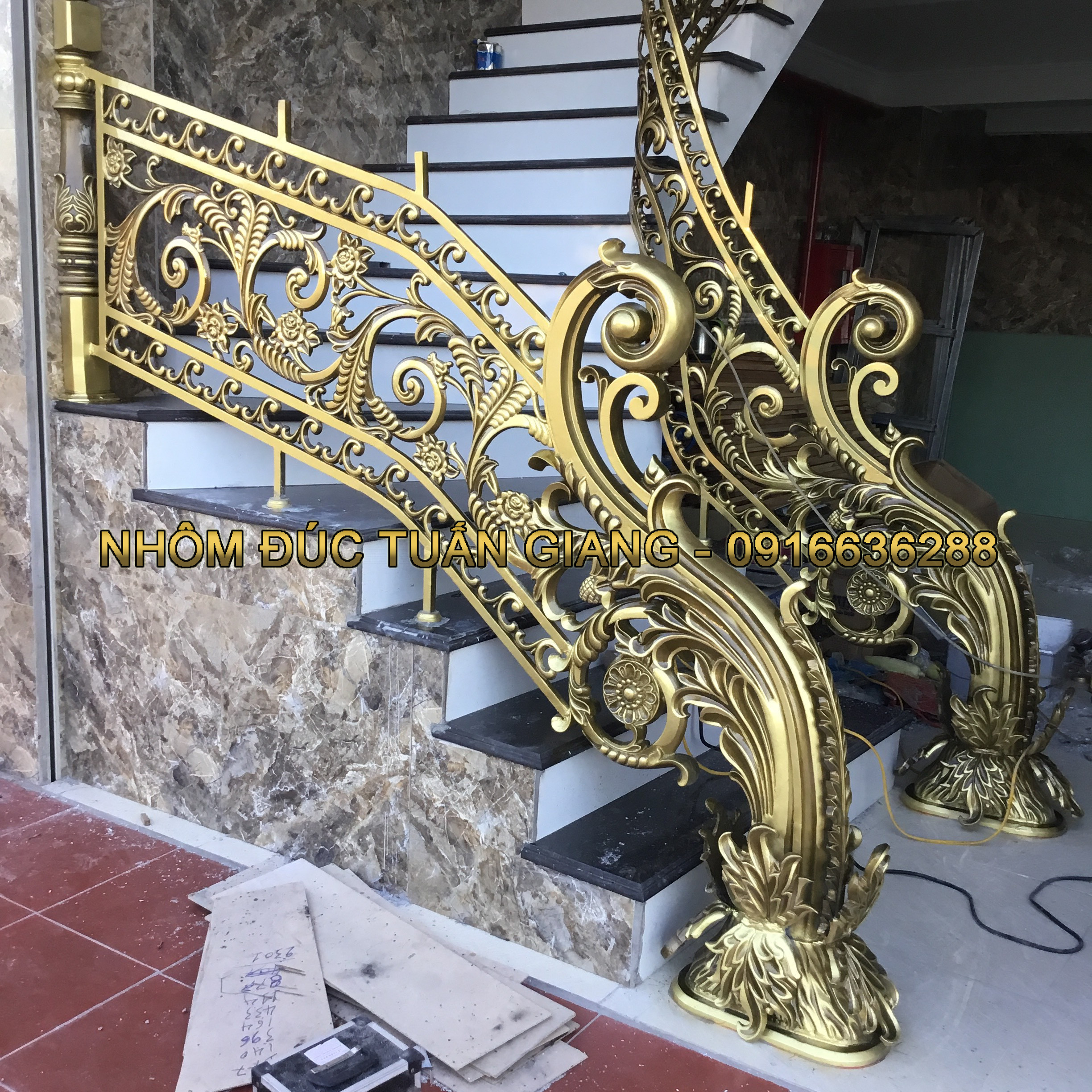 * Quý khách có thể chọn hoa văn có sẵn hoặc yêu cầu Tuấn Giang tư vấn và thiết kế mẫu cầu thang nhôm đúc theo ý tưởng của Quý khách. Hoặc Quý khách cũng có thể gửi mẫu để Tuấn Giang sản xuất theo mẫu.