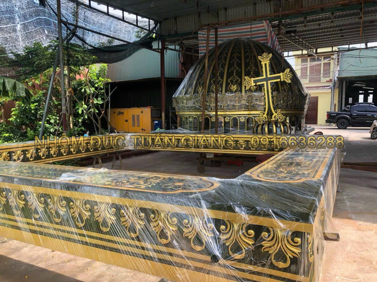 * Quý khách có thể chọn hoa văn có sẵn hoặc yêu cầu Tuấn Giang tư vấn và thiết kế mẫu chòi nhôm đúc theo ý tưởng của Quý khách. Hoặc Quý khách cũng có thể gửi mẫu để Tuấn Giang sản xuất theo mẫu.