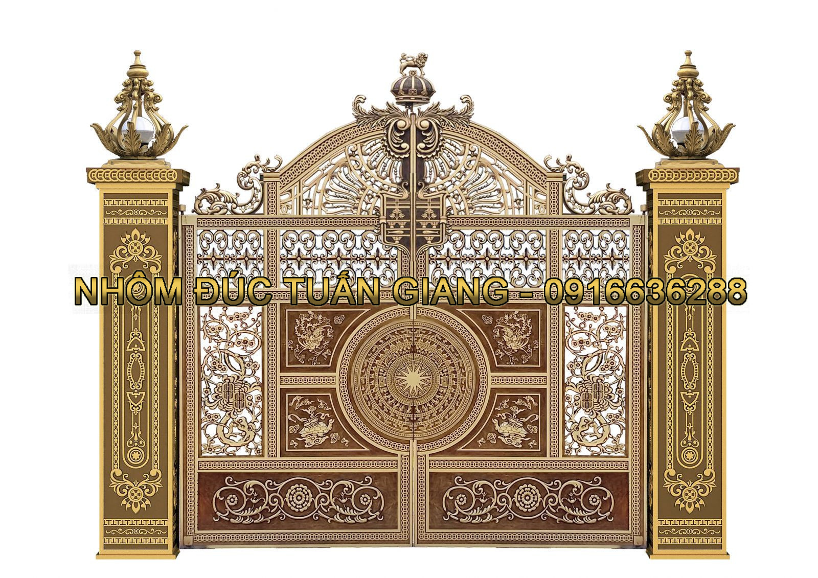 * Quý khách có thể chọn hoa văn có sẵn hoặc yêu cầu Tuấn Giang tư vấn và thiết kế mẫu cổng nhôm đúc theo ý tưởng của Quý khách. Hoặc Quý khách cũng có thể gửi mẫu để Tuấn Giang sản xuất theo mẫu.