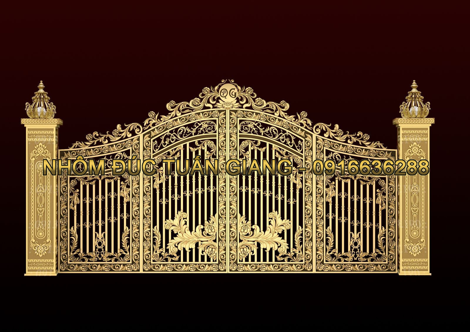 * Quý khách có thể chọn hoa văn có sẵn hoặc yêu cầu Tuấn Giang tư vấn và thiết kế mẫu cổng nhôm đúc theo ý tưởng của Quý khách. Hoặc Quý khách cũng có thể gửi mẫu để Tuấn Giang sản xuất theo mẫu.