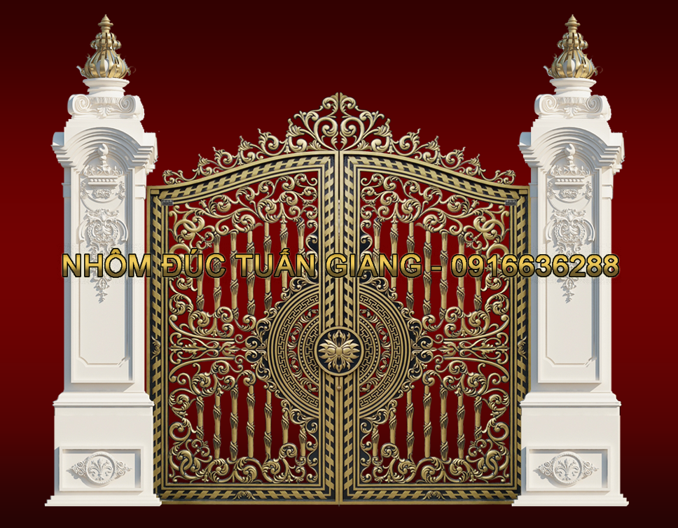 * Quý khách có thể chọn hoa văn có sẵn hoặc yêu cầu Tuấn Giang tư vấn và thiết kế mẫu cổng nhôm đúc theo ý tưởng của Quý khách. Hoặc Quý khách cũng có thể gửi mẫu để Tuấn Giang sản xuất theo mẫu.