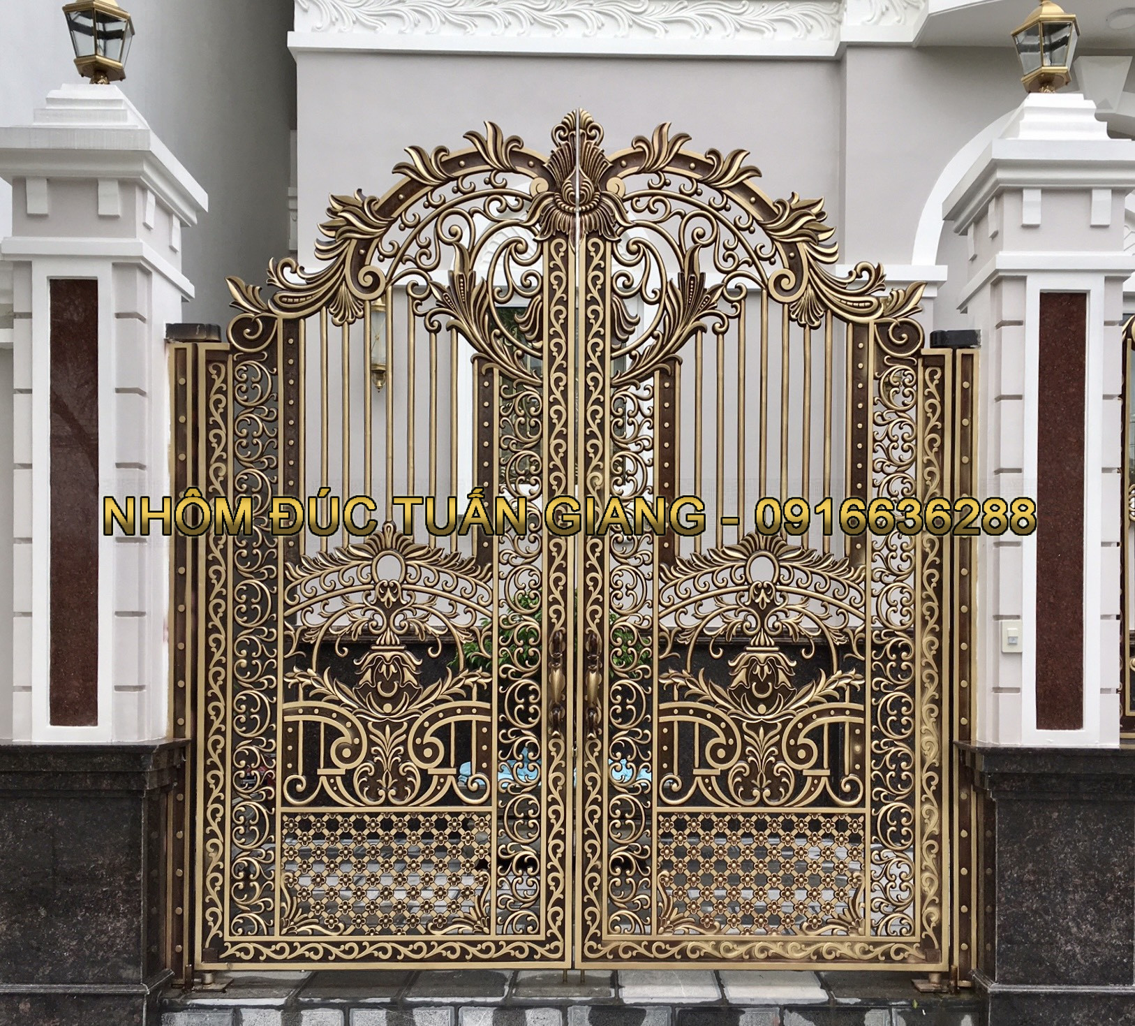 * Quý khách có thể chọn hoa văn có sẵn hoặc yêu cầu Tuấn Giang tư vấn và thiết kế mẫu cổng nhôm đúc theo ý tưởng của Quý khách. Hoặc Quý khách cũng có thể gửi mẫu để Tuấn Giang sản xuất theo mẫu.